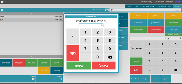 על מנת לשנות את כמות הפריטים בעסקה, בוחרים את הפריט הרצוי מתוך רשימת הפריטים במסך המכירה, ולאחר מכן בוחרים באחת מהאפשרויות הבאות: