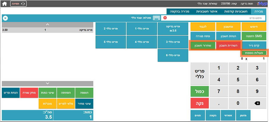 1. מוסיפים פריטים לחשבון במסך הקופה.