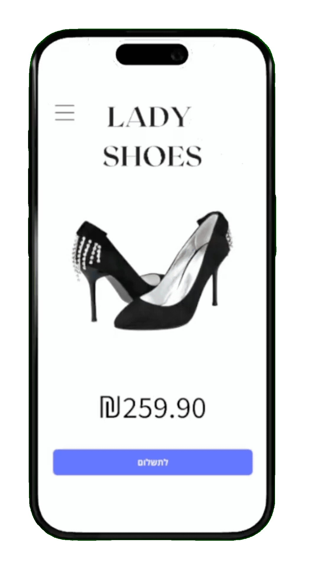 הדף מרכז את כל שלבי המכירה במקום אחד - מהצגת המוצר ועד התשלום - ומחובר באופן מלא למערכת Hyp, כולל הפקת חשבוניות באופן אוטומטי, מעקב אחרי הזמנות וניהול מלאי.
