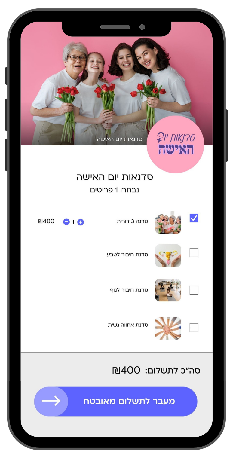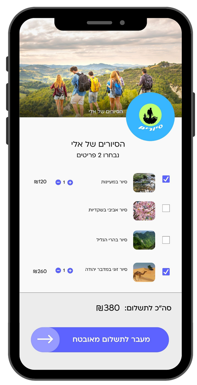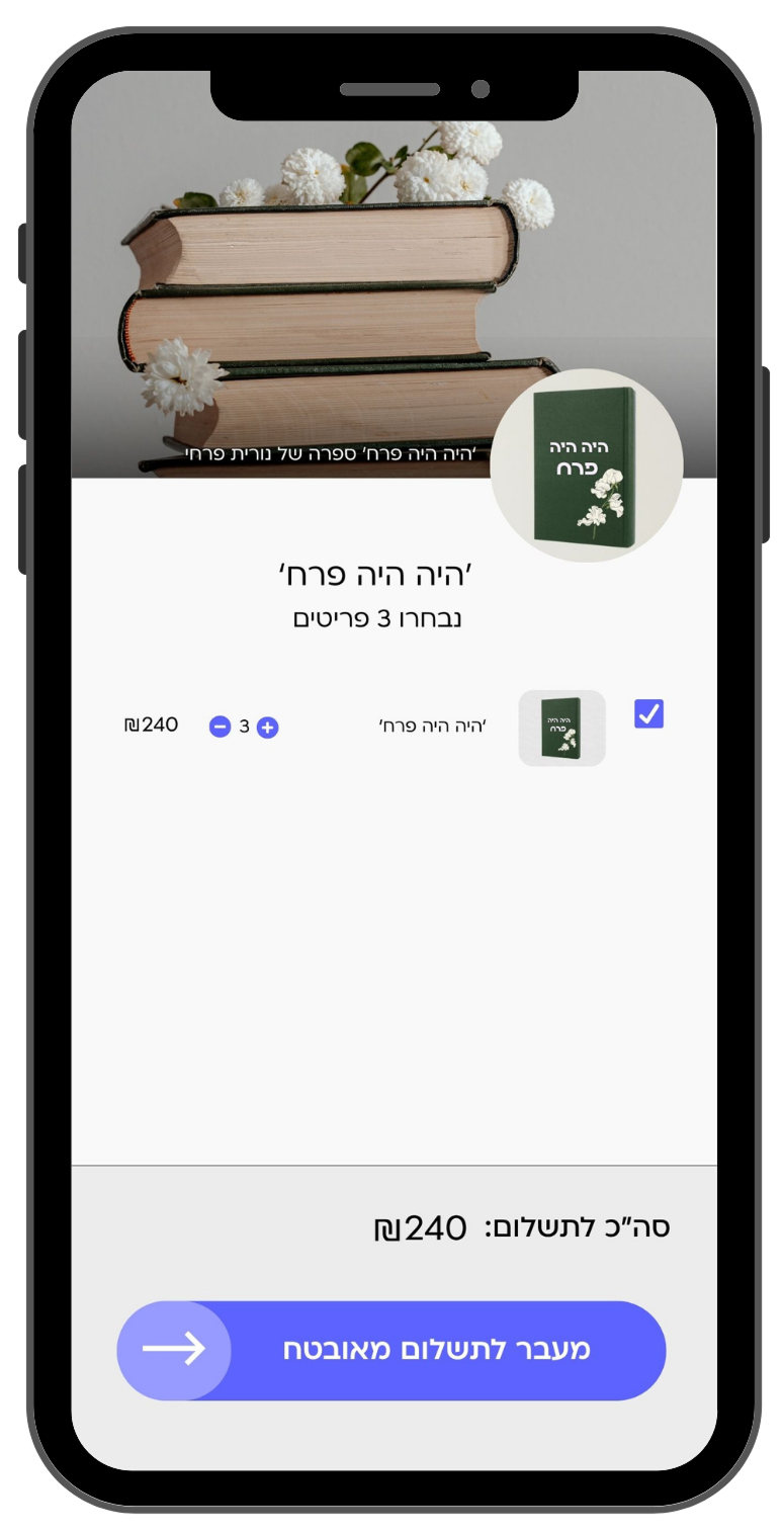 מרכזים את כל תהליך הרכישה בעמוד אחד: צפייה, בחירת פריטים ותשלום - בלי שלבים מיותרים ובלי נטישה בדרך.